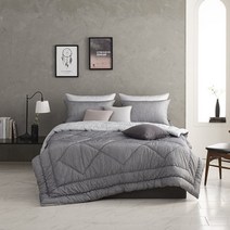 “[알레르망] 데런2 4계절 구스차렵D 5종세트A 그레이(리버서블) 4계절 구스차렵이불1p + 베개솜2p + 베개커버2p”